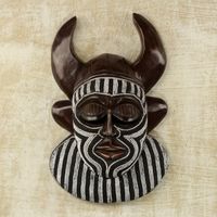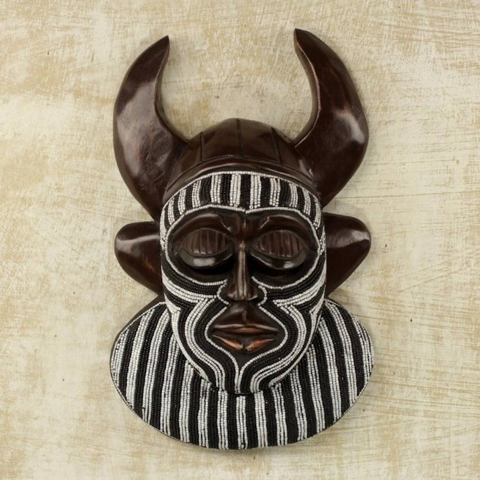 Black and White Beaded African Wood Horn Wall Mask of Power 'Kafo Horns' Item ID: 2671803829