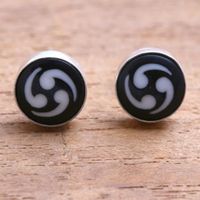 Black and White Bone Stud Earrings from Bali 'Tribal Wonder' Item ID: 2671736361