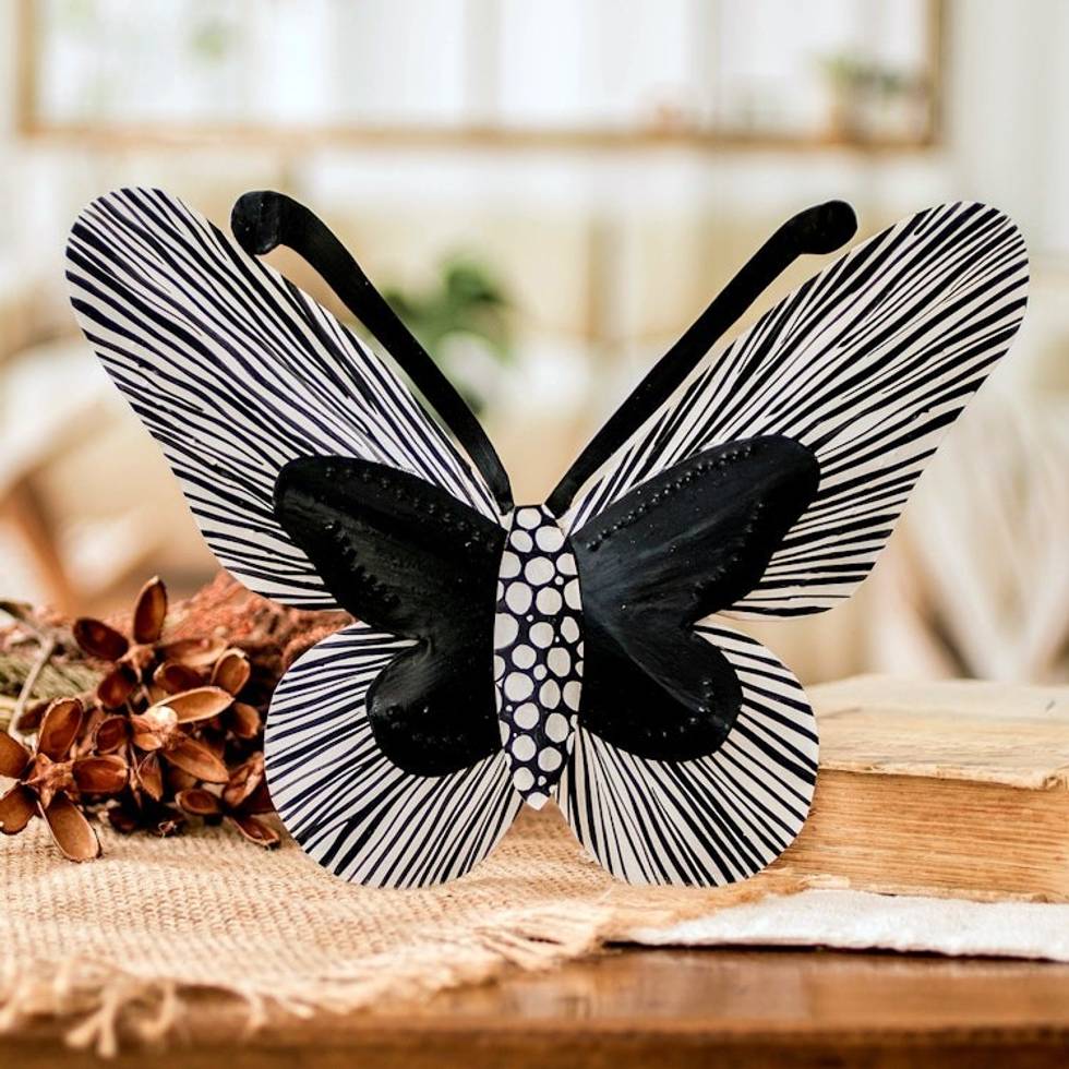 Black and White Butterfly Steel Wall Art from El Salvador 'Flutter in the Shadows' Item ID: 2671768862