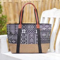 If you're looking for a great bag this is it! It's not only beautiful with the braided leather handles, trim and tassles but I love the fabric exterior! The pattern is really pretty especially for summer and there is so much room in this bag with the 3 large openings, and smaller pockets too, making a perfect bag for vacations and day trips! Comfortable to wear.