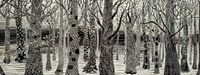 Black and White Forest Linocut Print with 10k Gold Leaf 'Volatile' Item ID: 2671808512