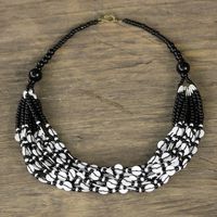 Black and White Ghanaian Necklace of Recycled Beads 'White Ghanaian Thank You' Item ID: 2671806484