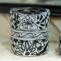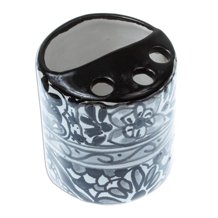Black and White Hand Painted Ceramic Toothbrush Holder 'Monochrome Flowers' Item ID: 2671808091