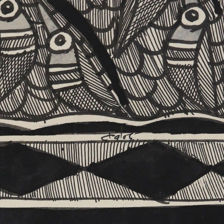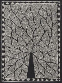 Black and White Madhubani Tree Painting from India 'Abode of Birds' Item ID: 2671792408