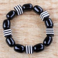 Black and White Recycled Beaded Glass Stretch Bracelet 'Maame' Item ID: 2671803759