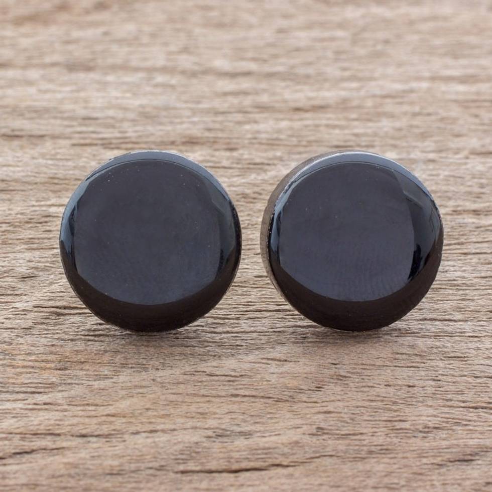 Black Art Glass Circle Button Earrings from Costa Rica 'Evening Pools' Item ID: 2671777649