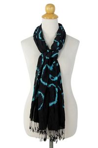 Black Blue Tie-dye Silk Scarf Crafted by Hand in Thailand 'Licorice Dance' Item ID: 2671802184