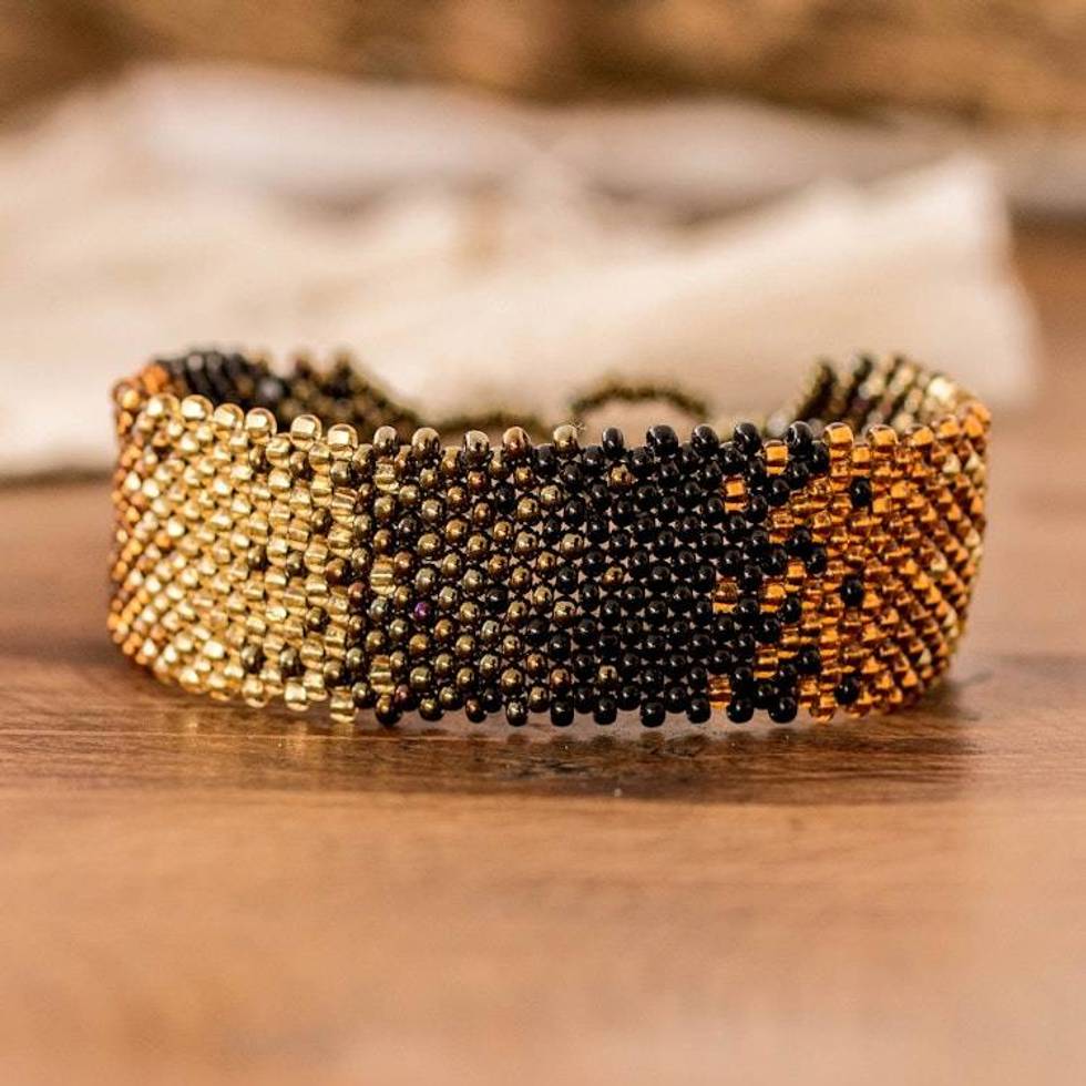 Black Bronze and Golden-Hued Adjustable Wide Beaded Bracelet 'Shimmering Gleams' Item ID: 2676659622