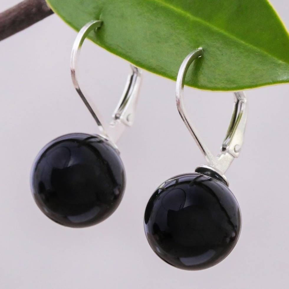 Black Calcite and Sterling Silver Earrings from Thailand 'Pure Black' Item ID: 2669926213