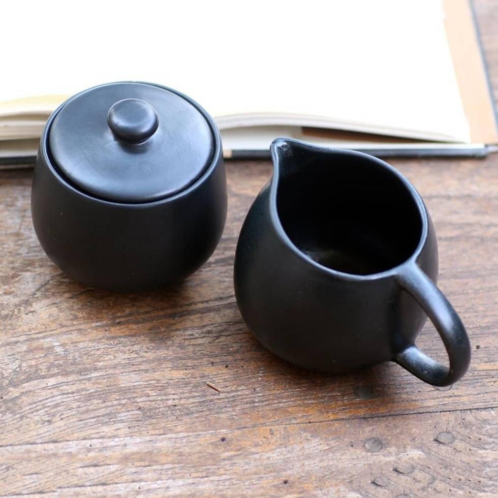 Black Ceramic Creamer Sugar Bowl Pair 'Cute Couple' Item ID: 2671745212