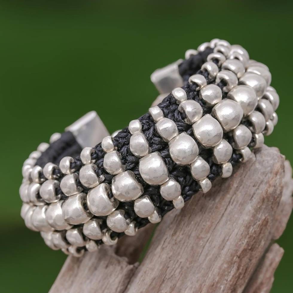 Black Cord Bracelet with 950 SIlver Beads 'Black Karen' Item ID: 2671799802