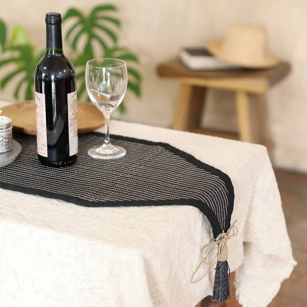 Black Cotton Blend Table Runner with Geometric Design 'Night Geometry' Item ID: 2671763405