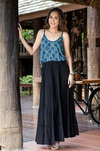 Black Cotton Gauze Skirt from Thailand 'Simple Vow in Black' Item ID: 2671641382