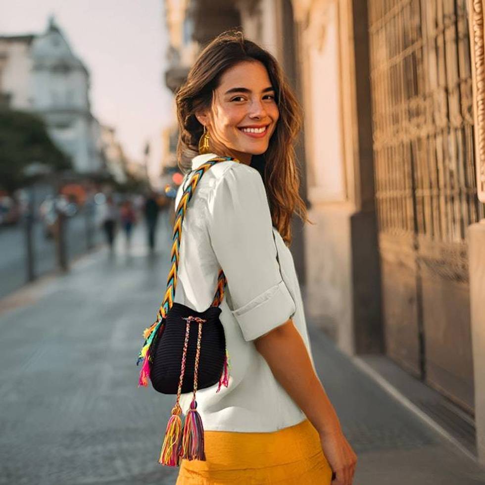 Black Crocheted Sling Bag with Multicolored Accents 'Wayuu Glam' Item ID: 2676641752