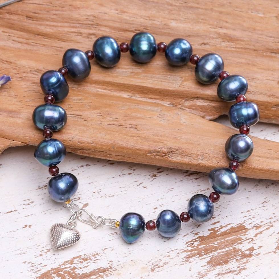 This bracelet it so unique. I love the heart shaped pearl and the color is so beautiful.