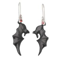 Black Garnet and Sterling Silver Dangle Earrings with Bats 'Nocturnal Passion' Item ID: 2671671510