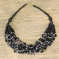 Black Ghanaian Necklace of Recycled Beads 'Midnight Ghanaian Thank You' Item ID: 2671806156
