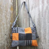 Black Grey Yellow Patchwork Hand Woven Cotton Shoulder Bag 'Legendary Grey' Item ID: 2671702059