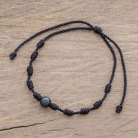 Black Jade and Nylon Knotted Cord Adjustable Bracelet 'Bold Texture in Black' Item ID: 2669933728