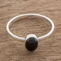 Black Jade and Silver Single Stone Ring from Guatemala 'Force and Beauty' Item ID: 2671779975