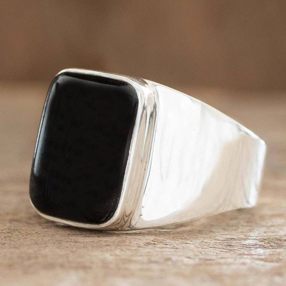 Black Jade Men's Statement Ring from Guatemala 'Virtue in Black' Item ID: 2676659767