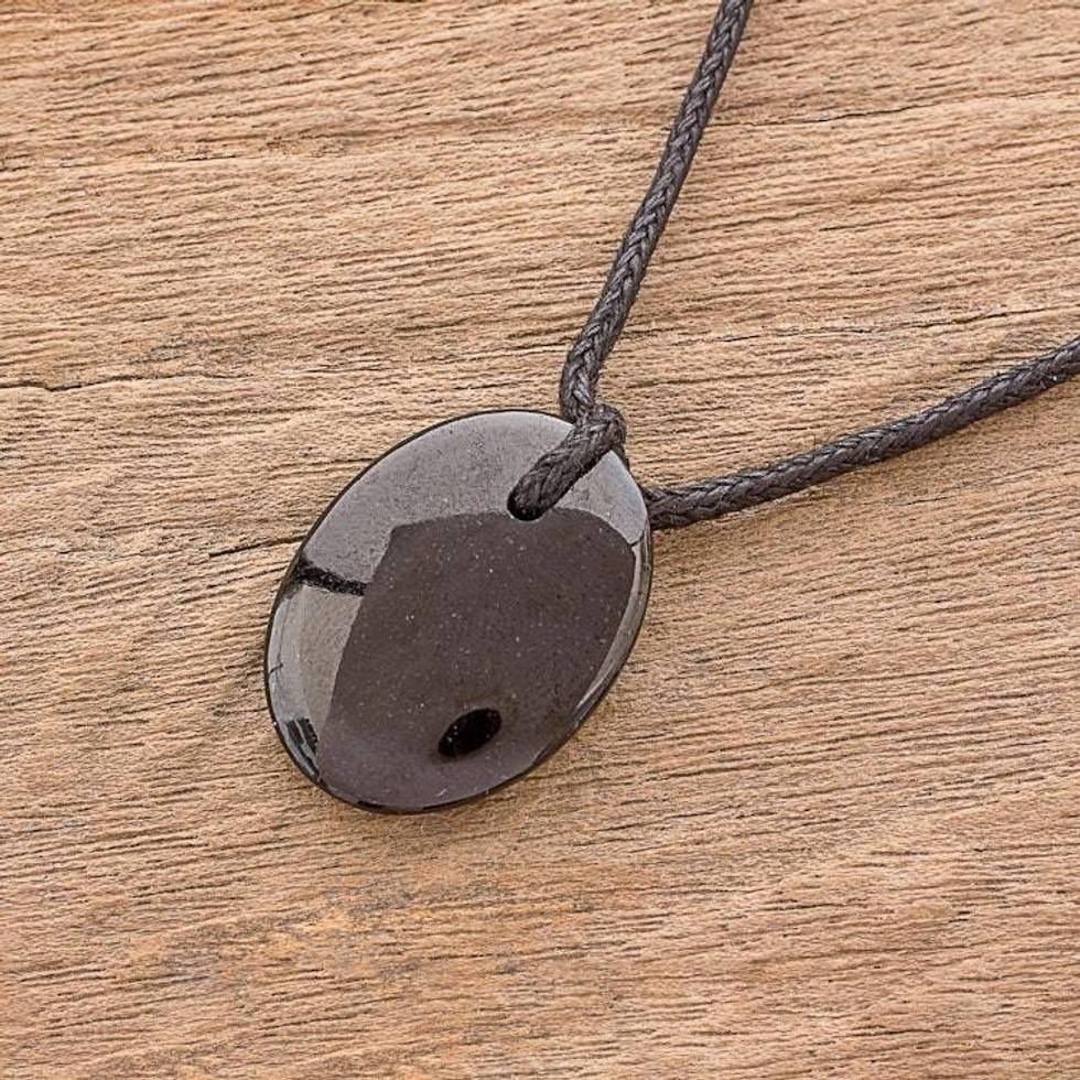 Black Jade Pendant Necklace with Cotton Cord 'Ancient Allure' Item ID: 2676659469
