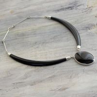 Black Jade Pendant Necklace with Sterling Silver 'Maya Elegance' Item ID: 2671780295