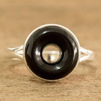 Black Jade Sterling Silver Cocktail Ring from Guatemala 'Cosmic Eternity' Item ID: 2676659873