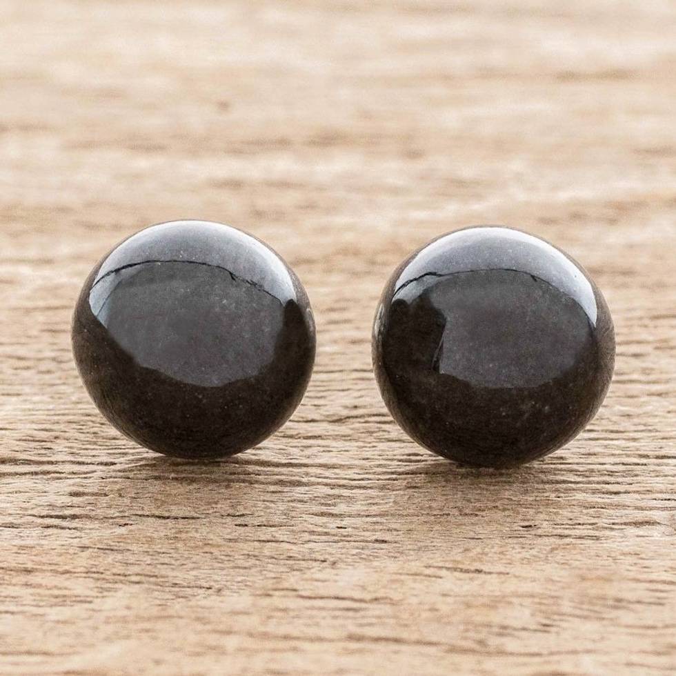 Black Jade Stud Earrings 'Serene Style in Black' Item ID: 2669923739