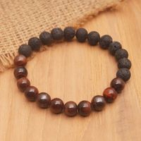 Black Lava Stone and Brown Agate Beaded Stretch Bracelet 'Quiet Volcano' Item ID: 2671654478