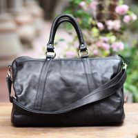 Black Leather Travel Bag with Zipper from Indonesia 'Minggat in Black' Item ID: 2671737168