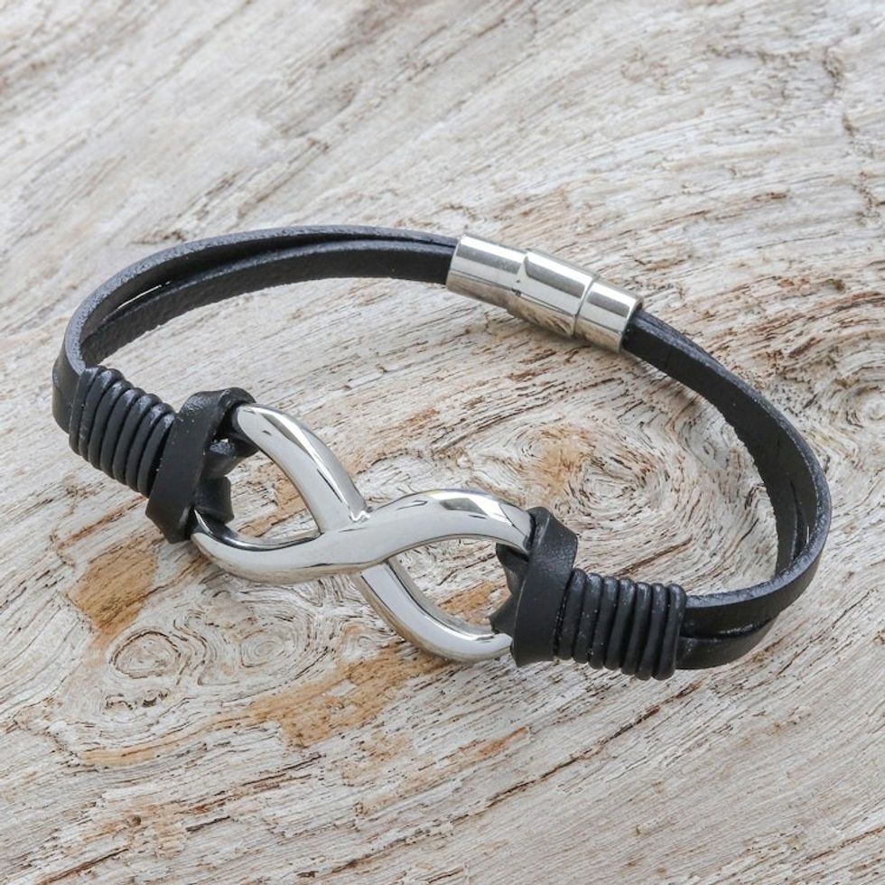 Black Leather Unisex Pendant Bracelet 'Cool Infinity in Black' Item ID: 2671800173