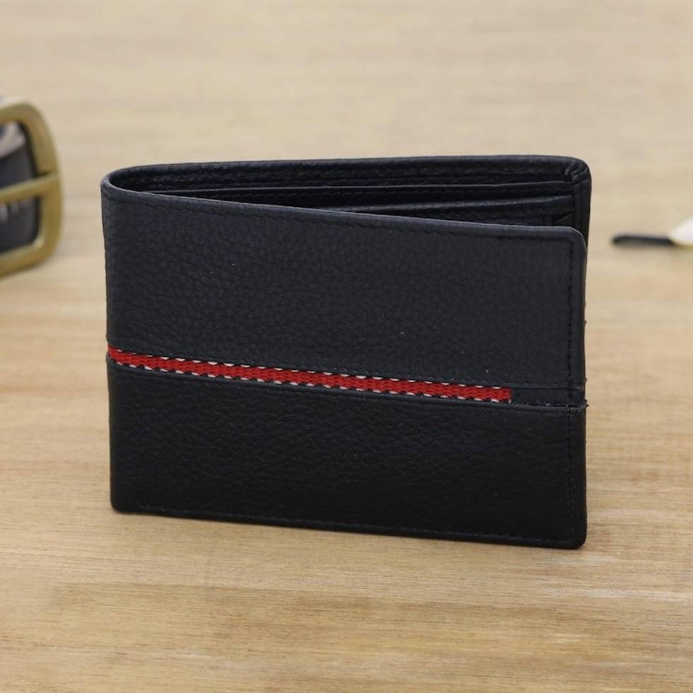 Black Leather Wallet for Men with Multiple Pockets 'Suave in Red' Item ID: 2669892218
