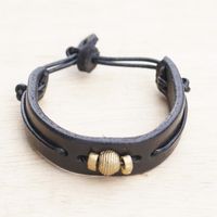 Black Leather Wristband Bracelet with Brass Accents 'Classic Midnight' Item ID: 2671804023