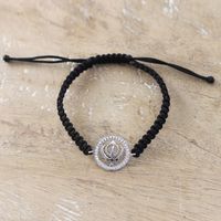 Black Macrame Cord Bracelet with Khanda Pendant and Gems 'Bonds of Knowledge' Item ID: 2671786848