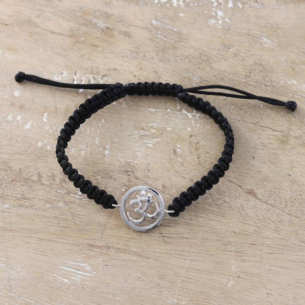 Black Macrame Cord Bracelet with Sterling Silver Om Symbol 'Altar to Enlightenment' Item ID: 2676663709