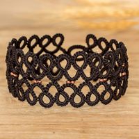 Black Macrame Wristband Bracelet with Golden-Toned Beads 'Gleams of Glamour' Item ID: 2671769366