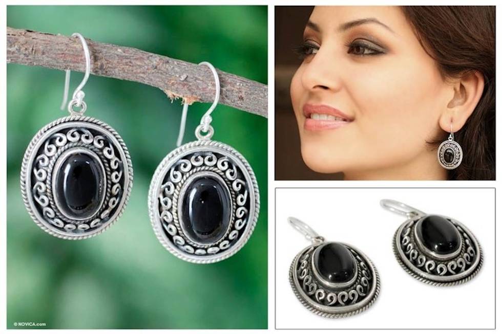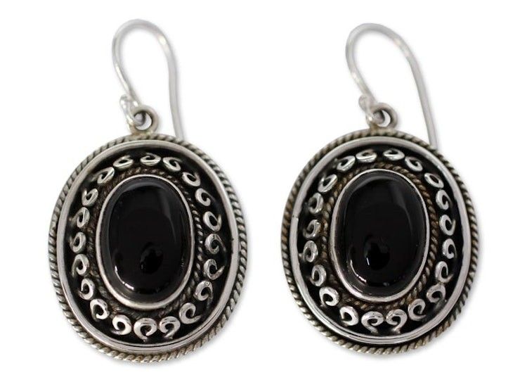 Black Onyx and Sterling Silver Earrings from India 'Tradition' Item ID: 2671794498