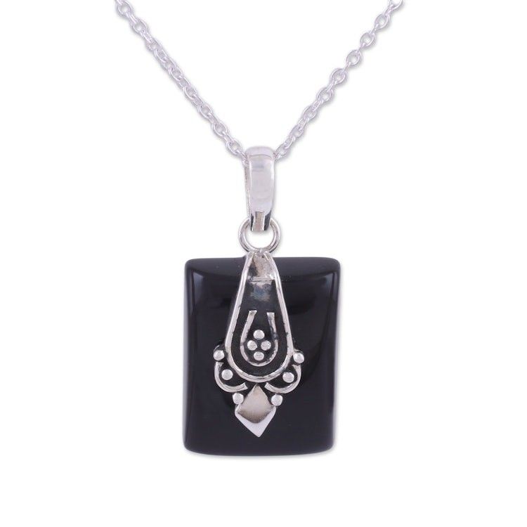 Black Onyx and Sterling Silver Pendant Necklace from India 'Midnight Greeting' Item ID: 2671791626