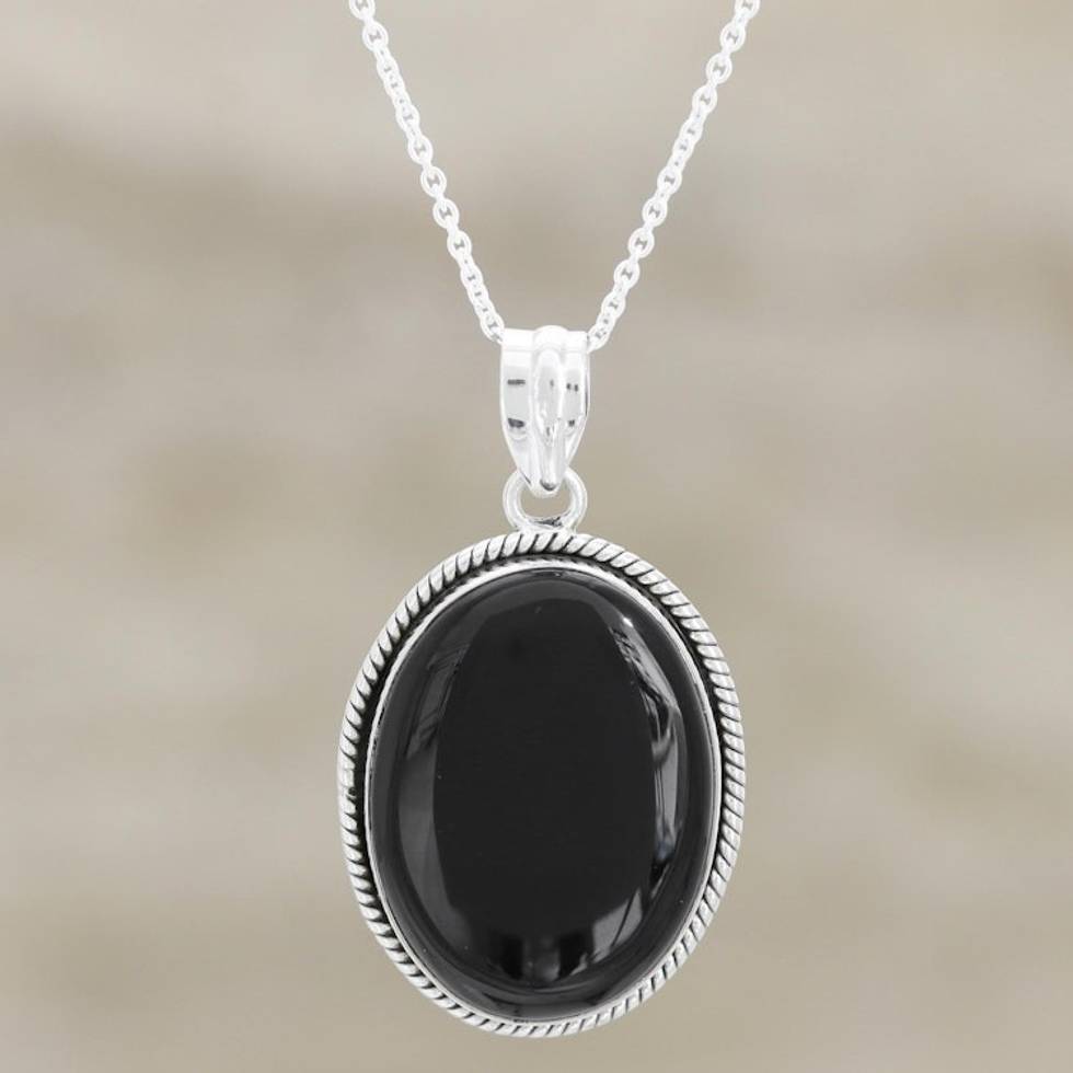 Black Onyx Cabochon Pendant Necklace 'Mysterious Night' Item ID: 2669923783
