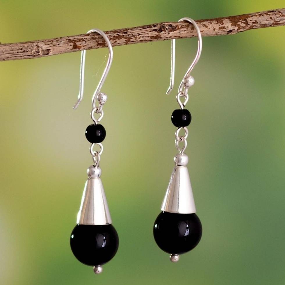 Black Onyx Dangle Earrings 'Wild Eyes' Item ID: 2671691296