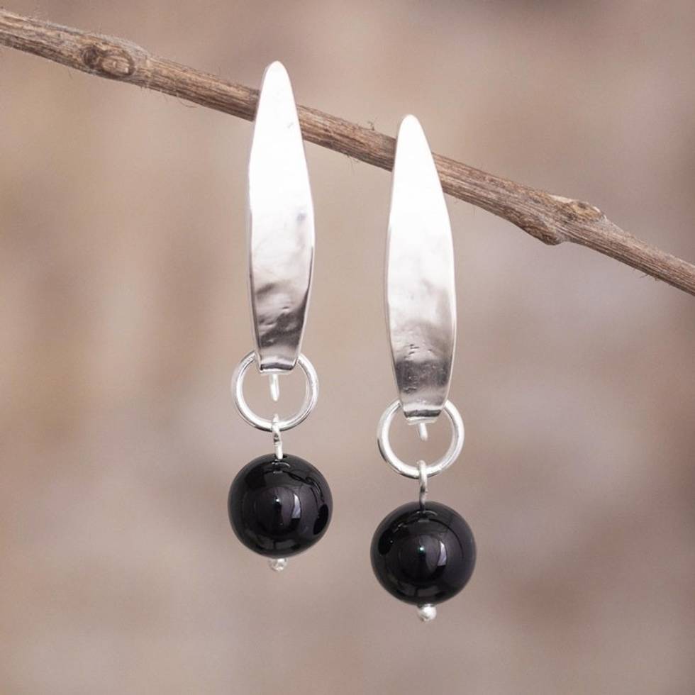 Black Onyx Earrings from Peru 'Natural Leaves' Item ID: 2671691371