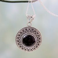 Black Onyx on Sterling Silver Pendant Necklace from India 'Mumbai Medallion' Item ID: 2671793284