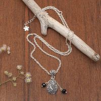 Black Onyx Sterling Silver Pendant Necklace from Bali 'Garden Elegance' Item ID: 2676662978