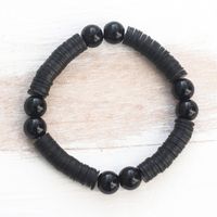 Black Recycled Plastic Beaded Stretch Bracelet from Ghana 'Tutum Yefe' Item ID: 2671805731