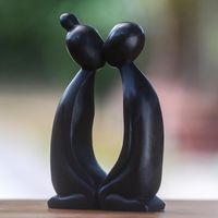 Black Wood Statuette of Lovers' Embrace from Bali 'Harmony' Item ID: 2671476328