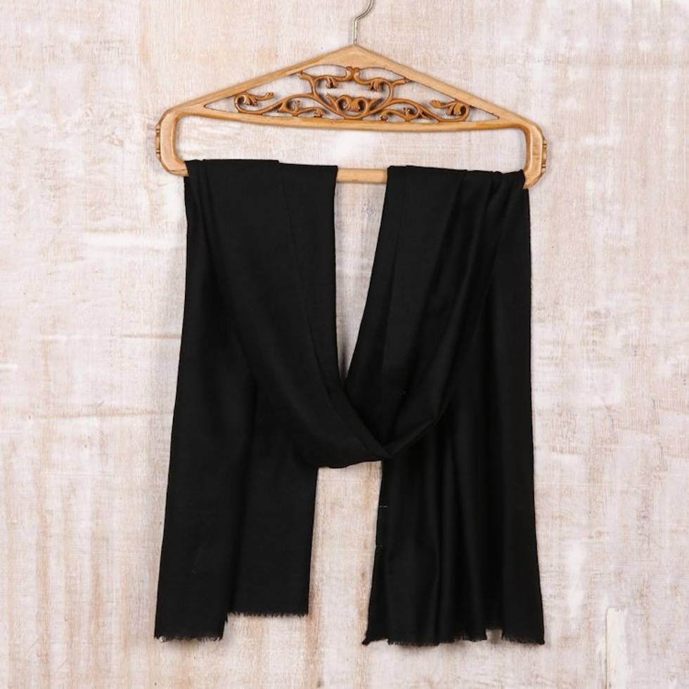Black Wool and Silk Blend Kashmir Shawl 'Kashmiri Night' Item ID: 2669956075