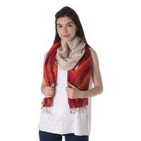 Block Printed Fringed Wave Motif Silk Shawl from India 'Fantastic Waves' Item ID: 2671791371
