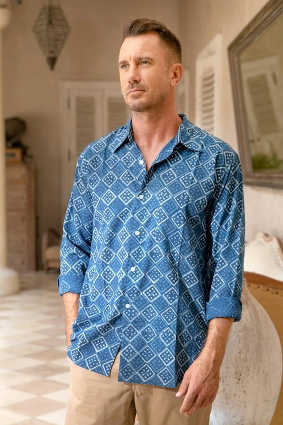 Block-Printed Men's Cotton Shirt from India 'Bold Diamonds' Item ID: 2669892159