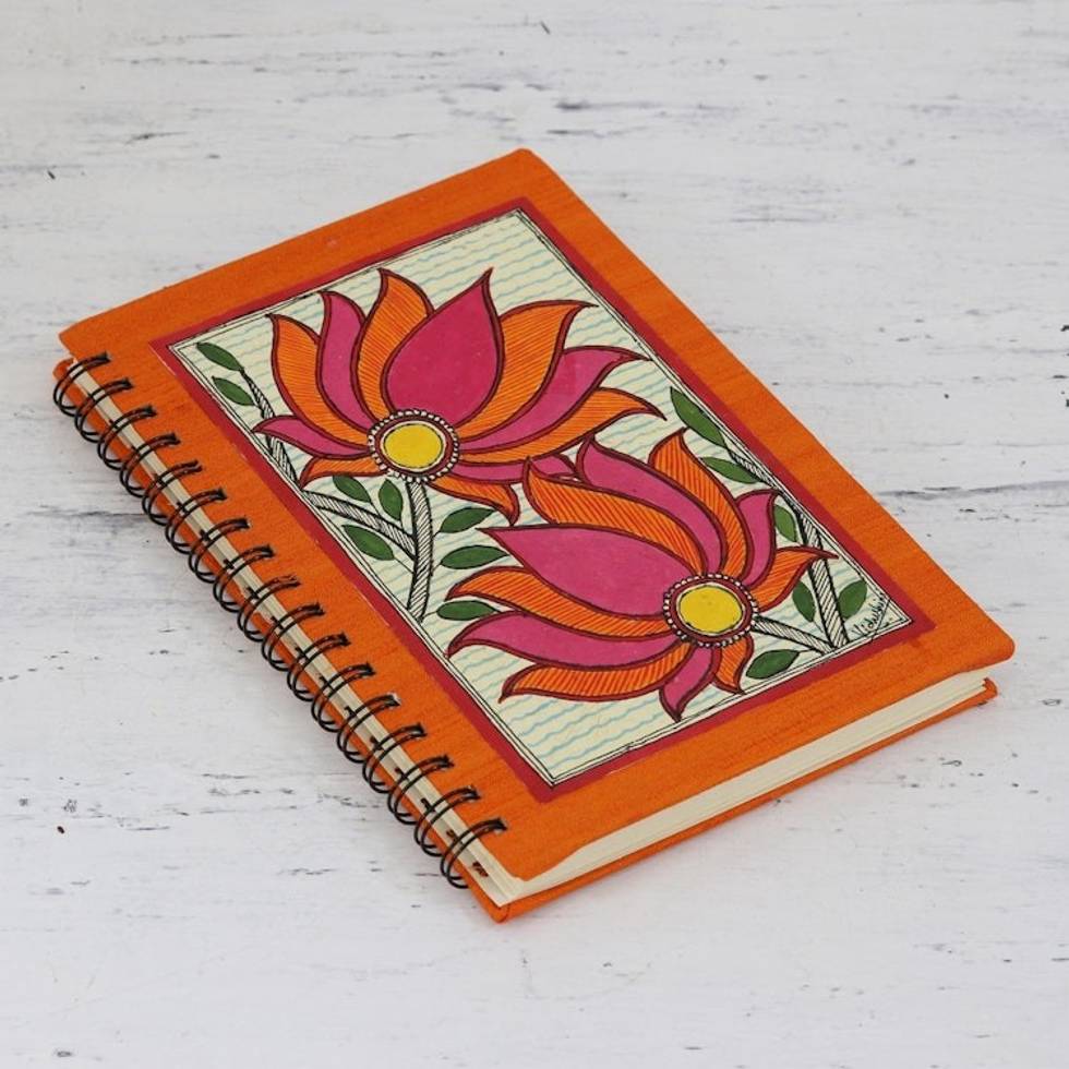 Blooming Lotus Handmade Paper Journal from India 'Blooming Lotus' Item ID: 2671790995